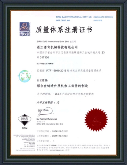 浙江諾肯機械科技有限公司(原黃巖新興機械配件有限公司)成立于1983年,坐落于浙江省東海之濱臺州市三門縣沿海工業(yè)城,現(xiàn)有員工160余人,總體占地面積40000平米。公司秉承“誠信為本、精工細作”的精神,現(xiàn)已發(fā)展成為集研發(fā)、制造及營銷為一體的鋁合金精密鑄件生產(chǎn)基地,為客戶提供精密鑄造、熱處理和精密機加工的一體化解決方案。